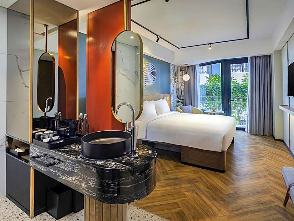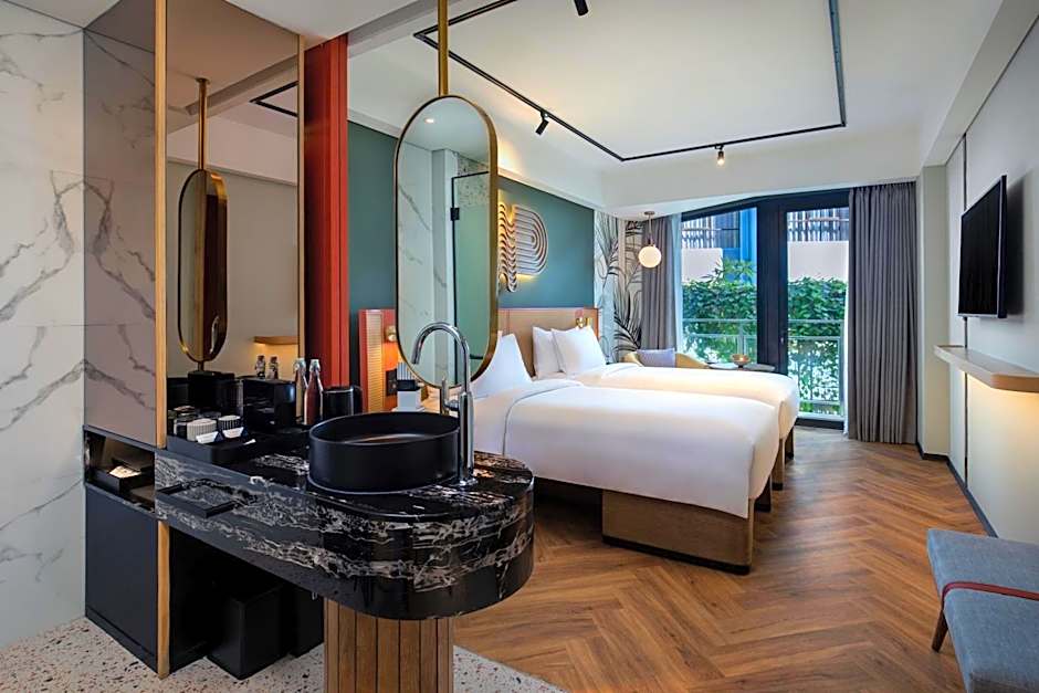 TRIBE COMFORT TERRACE is 301 square feet and includes a queen-size bed 150-154 width plus balcony, extra beds on demand, satellite tv , cable tv, hairdryer, tea and coffee making facilities , and slippers and is Wheelchair-accessible.